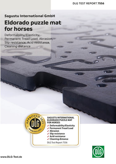 Veuillez noter que la chape pour sol en caoutchouc SAGUSTU est composée de caoutchouc naturel et ne contient aucun solvant. Cette consistance respectueuse de l’environnement peut entraîner, en cas de degré d’humidité propice ou d’humidité résiduelle au niveau de la surface de pose, la formation d’un film calcaire. Celui-ci peut être éliminé à l’aide de nettoyants anti-calcaire disponibles dans le commerce. L’apparition de légères empreintes de sabot due aux pressions exercées sur la couche supérieure en latex est importante pour la stabilité des appuis du cheval et n’endommage aucunement le revêtement. Les instructions de pose sont fournies après la commande lors de la livraison de la marchandise.